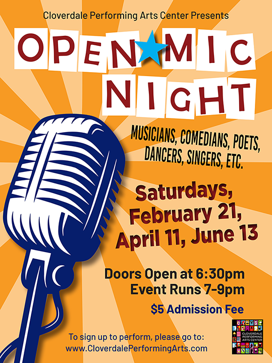 Got a song, a poem, a comedy bit, or a story you’ve been dying to share? Or maybe you just love discovering local talent? Open Mic Night at Cloverdale Performing Arts Center is the place to be.